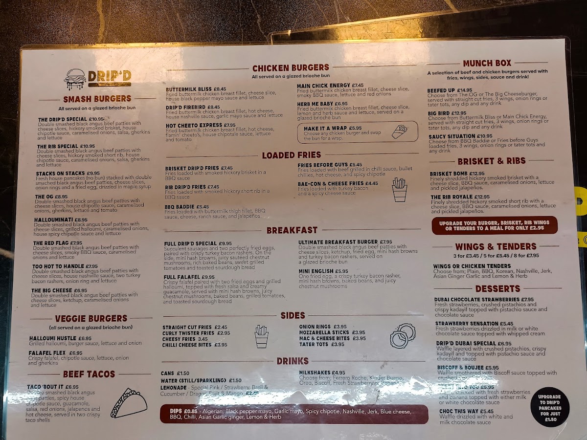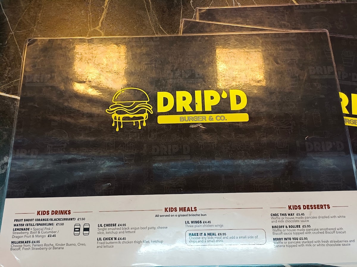 The menu at Drip’d Burger & Co features a variety of items centered around hamburgers and related casual dining options. It is organized into several key groups to accommodate different preferences and meal needs.