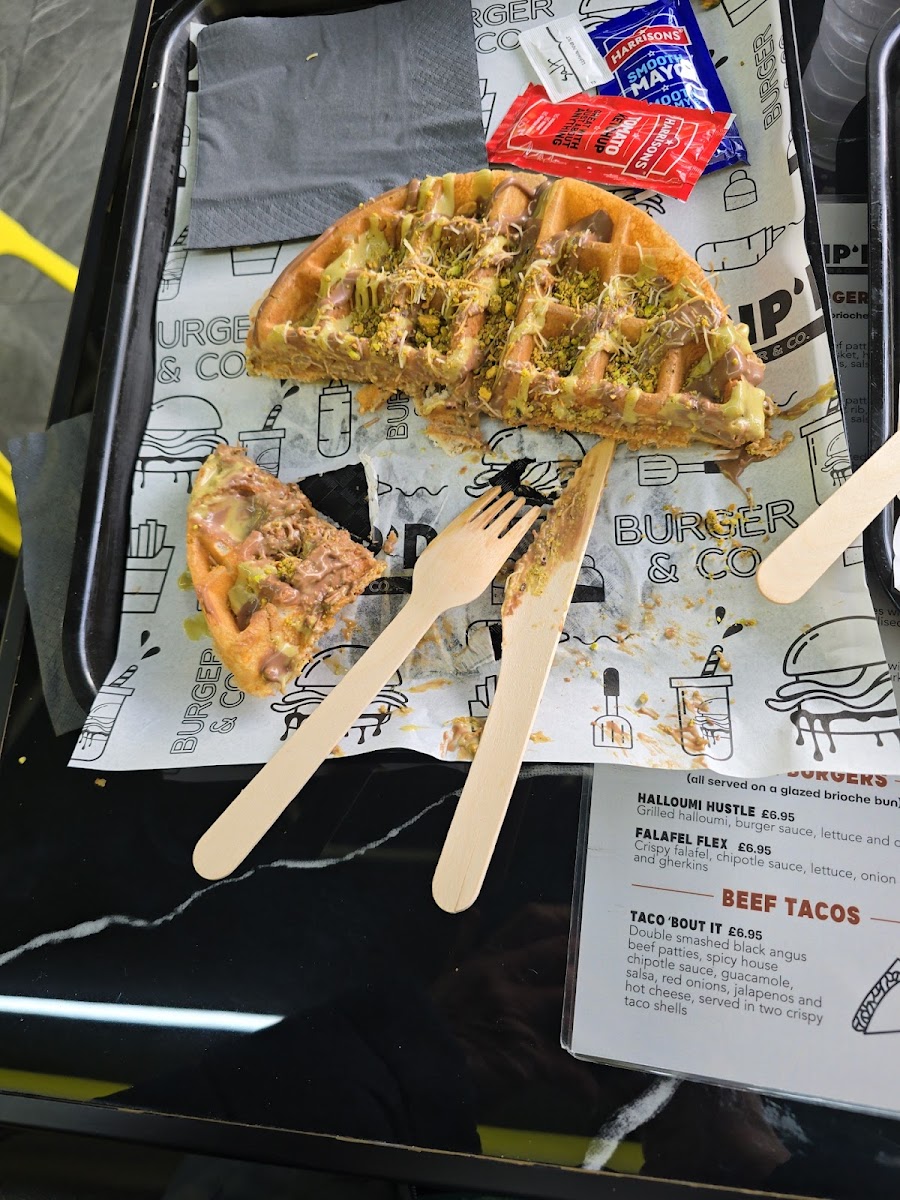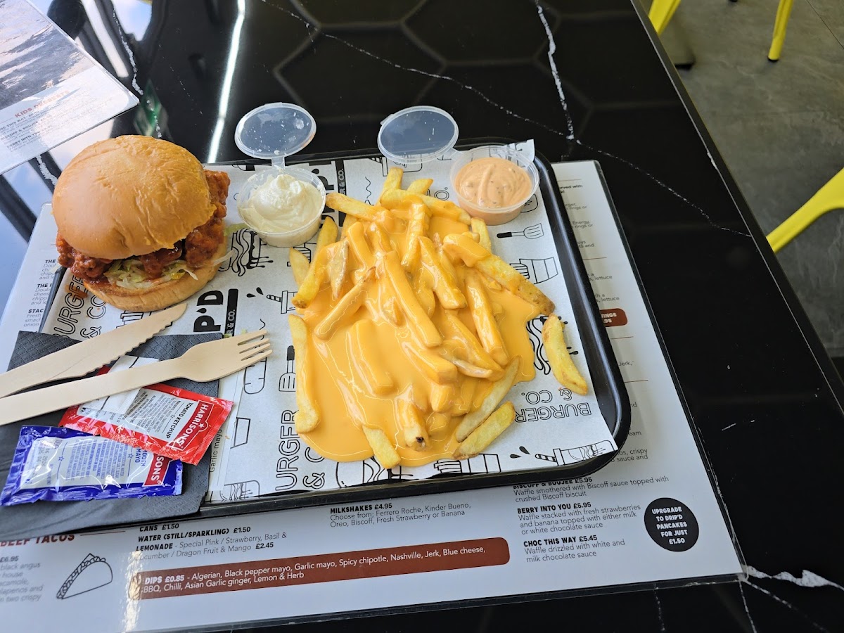 Sides and Snacks: Typical side dishes include french fries, curly fries, mozzarella sticks, and waffle-based options, catering to those seeking lighter or complementary items alongside their main meal.